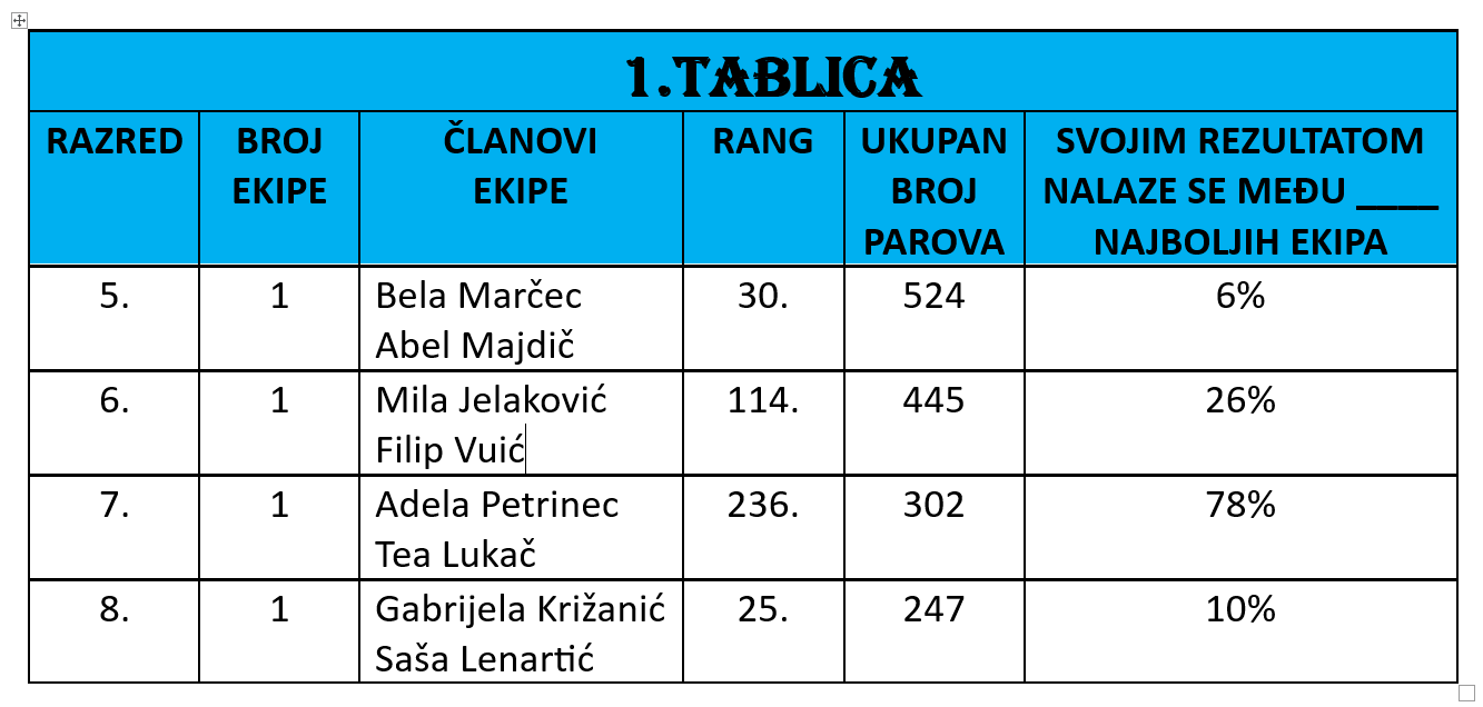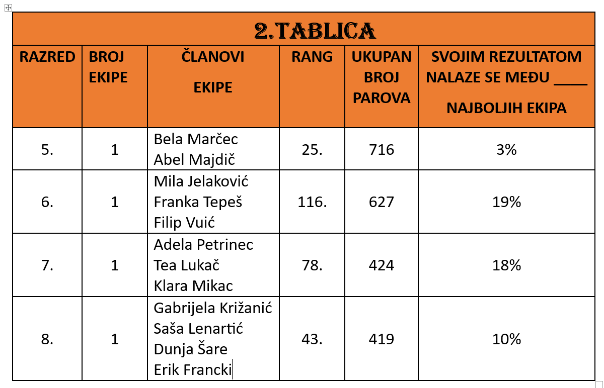 Rezultati svih kola se zbrajaju pa u 2. tablici možete pogledati konačan rezultat ekipa za ovu školsku godinu!