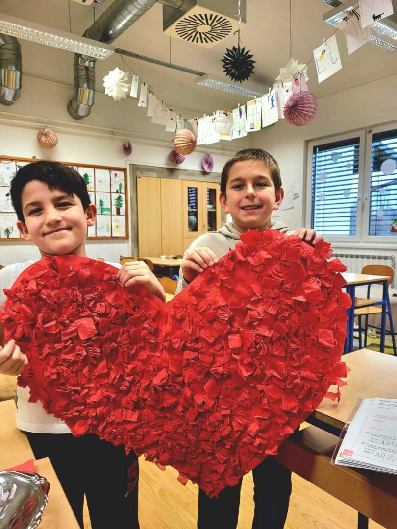 Izrađivali su crteže, čestitke i prigodne ukrase koristeći kolaž, salvete i drvene štapiće, bojali flomasterima i pastelama te pisali poruke prijateljstva.