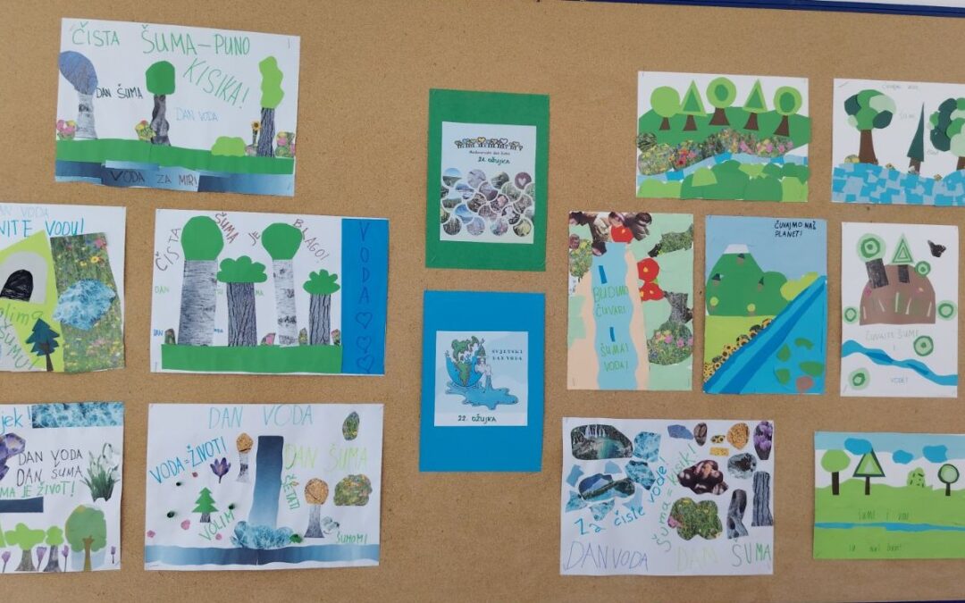 Učenici 3.a i 3.b razreda su izrađivali plakate i likovne radove kako bi si posvijestili koliko je voda važna i koliko je važno osigurati njezinu dostupnost svim ljudima na svijetu.